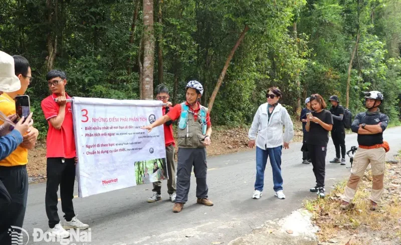 - Hình bìa: Hướng dẫn viên hướng dẫn những kỹ năng cơ bản cho du khách trước tour Trekking khám phá rừng Gia Canh. Ảnh: Ngọc Liên