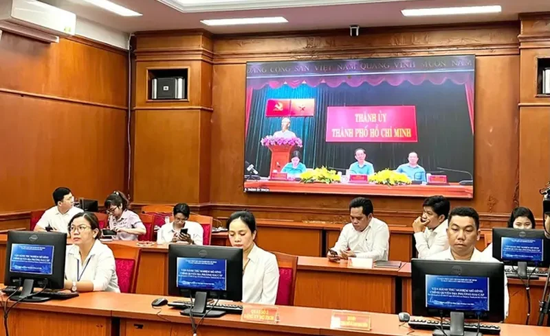 Sau khi phát lệnh vận hành thử nghiệm, các đồng chí Ủy viên Ban Thường vụ Thành ủy TPHCM giám sát tại quầy thực hiện thủ tục hồ sơ của Trung tâm phục vụ hành chính công phường, xã. Sau đó, lãnh đạo TPHCM nghe báo cáo nhanh kết quả vận hành thử nghiệm và họp rút kinh nghiệm quá trình vận hành thử nghiệm.