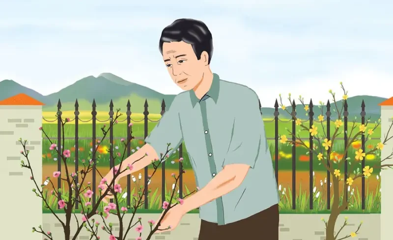 Trời se se lạnh. Lại thấy cha tôi loanh quanh đầu ngõ với cây mai, cây đào. Chắc ông lại lo hoa nở không đúng ngày nếu lỡ quên không ngắt lá. Tôi chưa thấy ông quên bao giờ, nhưng năm nào ông cũng lo vậy. Trên nền đất bazan son đỏ, tôi như đã thấy màu hoa nhuộm thắm quyện vào màu đất, màu nắng trong hương xuân đượm nồng.