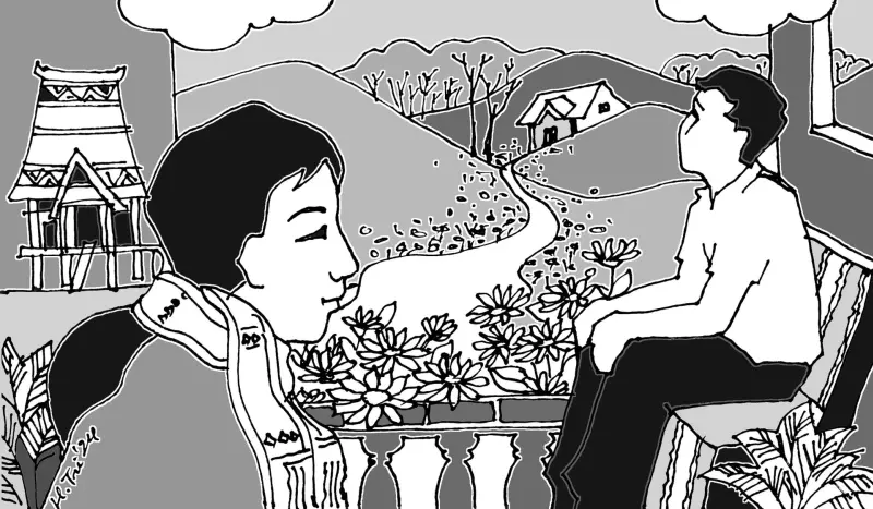 Nàng vẫn chưa hiểu chuyện gì đang xảy ra. Quân đã ngồi hẳn bên bậu cửa hành lang, chỗ có vài thanh củi còn ấm từ đêm qua. Từ phía nhà dưới, người đàn bà đưa nàng đi nhận phòng đêm qua bưng khay nước, khói bốc ra từ ly ca cao nóng, thơm phức. Khoa, chàng thanh niên nhanh nhảu đỡ khay nước cho chị ta.