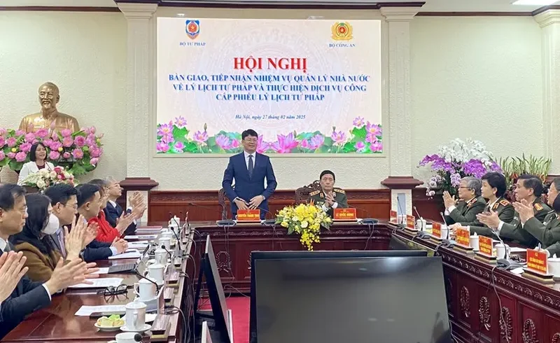 Sáng 27/2, Bộ Tư pháp tổ chức lễ bàn giao nhiệm vụ quản lý Nhà nước về lý lịch tư pháp và thực hiện dịch vụ công cấp Phiếu lý lịch tư pháp từ Bộ Tư pháp sang Bộ Công an.