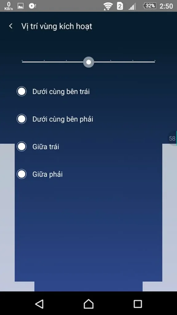 Tại hộp thoại hiện ra sau đó, bạn có thể chọn “Giữa trái” hoặc “Giữa phải” để có thể kích hoạt Omni Swipe bằng cách lướt tay từ vị trí giữa màn hình bên trái hoặc bên phải.