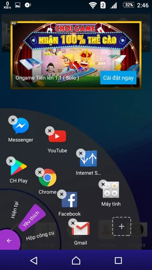 Mặc định tại mục “Yêu thích”, Omni Swipe sẽ hiển thị các biểu tượng ứng dụng được người dùng thường xuyên sử dụng để có thể kích hoạt nhanh chúng nếu cần. Tuy nhiên, người dùng có thể thay đổi các biểu tượng ứng dụng này bằng cách nhấn và giữ tay vào biểu tượng ứng dụng đó, sau đó chọn dấu “x” từ biểu tượng hiện ra để loại bỏ. Sau đó, bạn có thể nhấn vào biểu tượng dấu “+” tại vị trí mà ứng dụng đã bị loại bỏ để chọn một ứng dụng khác thay thế.