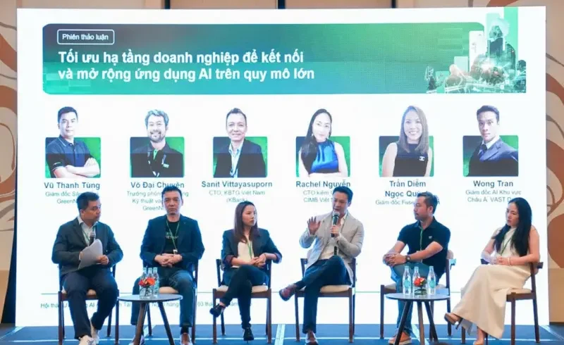 | Các chuyên gia chia sẻ ứng dụng AI trong ngành tài chính – ngân hàng tại Hội thảo “Phát triển lợi thế cạnh tranh cho doanh nghiệp tài chính với hạ tầng thông minh và ứng dụng AI”. Ảnh: VJST |