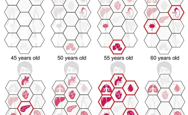Cụ thể hơn, nghiên cứu cho thấy một “khúc cua” gấp khúc nằm ngay tại cột mốc 50 tuổi. Tại đây, cỗ máy sinh học của chúng ta không chỉ “xuống cấp” từ từ, mà thực sự trải qua một đợt rung lắc dữ dội, nơi tốc độ lão hóa tăng vọt và hàng loạt cảnh báo bệnh lý đồng loạt bật sáng.