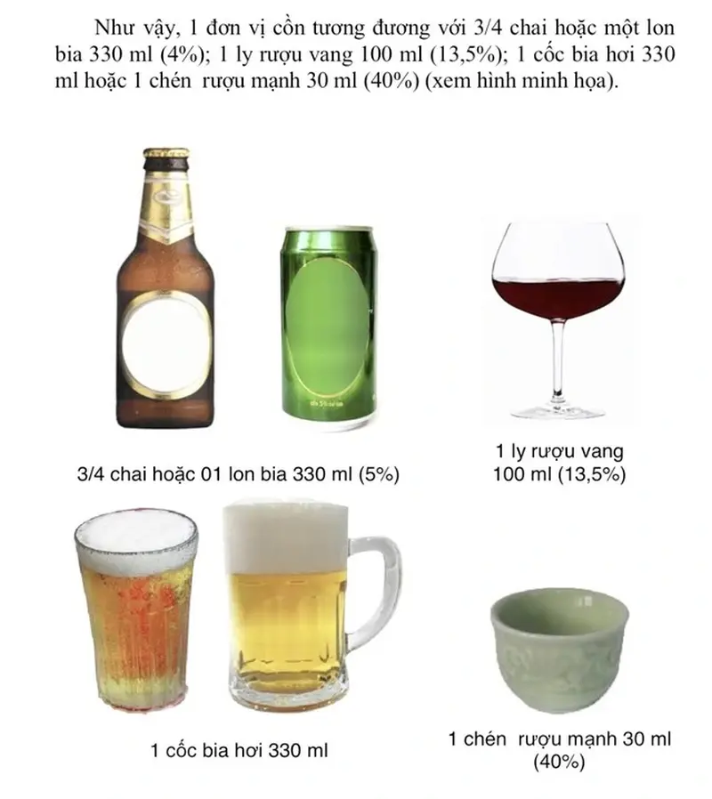 Theo Cục Y tế dự phòng (Bộ Y tế), với đồ uống có cồn như rượu, bia, không có mức độ uống nào là an toàn. Các bằng chứng khoa học cho thấy: chỉ cần uống một lượng rất nhỏ rượu, bia cũng có thể gây ra các nguy cơ và hậu quả cho sức khỏe.
