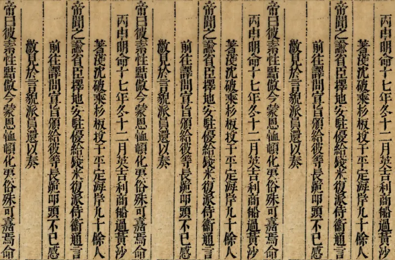 Sách “Đại Nam thực lục chính biên đệ nhị kỷ”, quyển 154, năm Minh Mạng thứ 16 (1835) chép: “Hoàng Sa ở hải phận Quảng Ngãi có một chỗ nổi cồn trắng, cây cối xanh um, giữa cồn cát có cái giếng, phía tây nam có miếu cổ, có tấm bài khắc 4 chữ “Vạn lý ba bình” (tức muôn dặm sóng êm). Cồn Bạch Sa có chu vi 1.070 trượng, tên cũ là núi Phật Tự, bờ đông, tây, nam đều đá san hô thoai thoải uốn quanh mặt nước. Phía bắc, giáp với cồn toàn đá san hô, sừng sững nổi lên, chu vi 340 trượng, cao 1 trượng 3 thước, ngang với cồn cát gọi là Bàn Than thạch. Năm ngoái (tức năm 1834), vua toan dựng miếu lập bia chỗ ấy, bỗng vì sóng gió không làm được. Đến đây, mới sai Cai đội Thủy quân là Phạm Văn Nguyên đem lính thợ Giám thành cùng phu thuyền hai tỉnh Quảng Ngãi và Bình Định chuyên chở vật liệu đến dựng miếu (cách tòa miếu cổ 7 trượng). Bên tả miếu dựng bia đá; phía trước miếu xây bình phong. Mười ngày làm xong rồi về”.