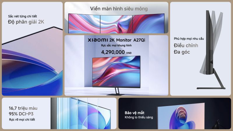 – Xiaomi 2K Monitor A27Qi giá 4.290.000 đồng. Từ ngày 1 – 31/1/2025, giảm 500.000 đồng, còn 3.790.000 đồng.