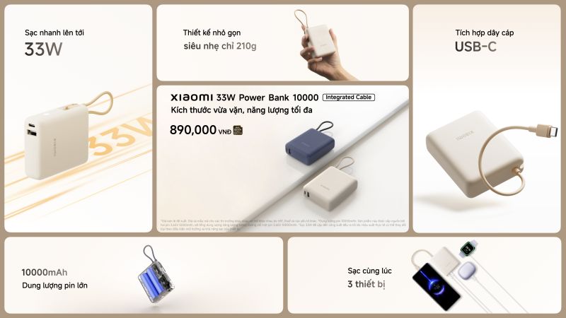 – Xiaomi 33W Power Bank 10000 giá 890.000 đồng, chỉ bán tại Thế Giới Di Động. Từ ngày 1 -31/1/2025, giảm 100.000 đồng, còn 790.000 đồng.